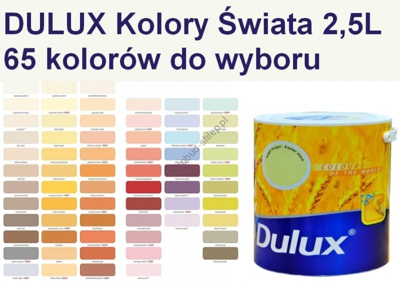 Dzisiejszym recenzowanym produktem jest żółta lateksowa emulsja firmy Dulux. Farba ta należy do bogatej gamy produktów z linii Kolory Świata – opisywany model to „Hawajskie Słońce”. Emulsja Dulux dystrybuowana jest w opakowaniach 2,5 litra oraz 5 i 10 litrowych.