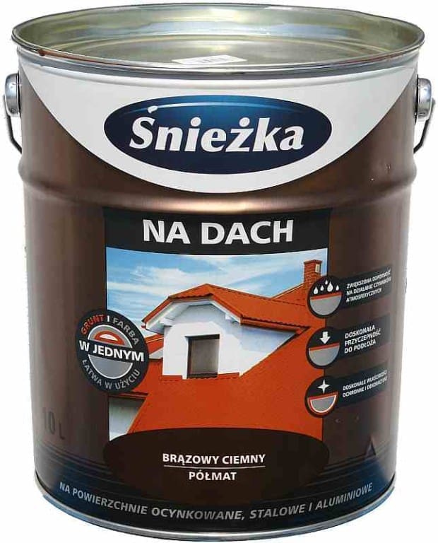 Dzisiejszym recenzowanym produktem jest poliwinylowa farba „Farba na dach” renomowanej marki ŚNIEŻKA. Opisywany wariant to puszka o pojemności 0,75 litra.