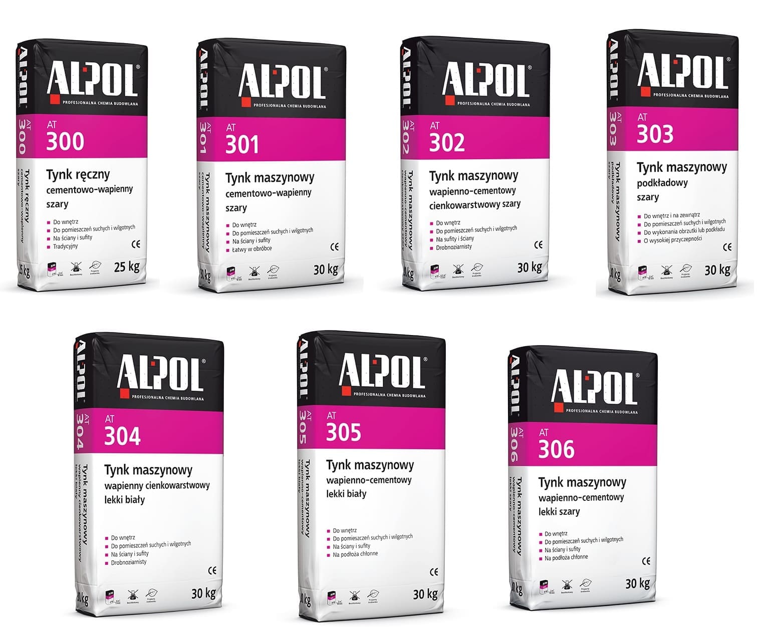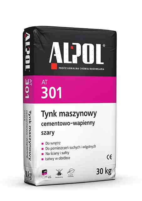 Opisywanym produktem jest tynk cementowo-wapienny przystosowany do maszynowej metody aplikacji marki ALPOL – model AT 301 w kolorze szarym. Tynk ów dystrybuowany jest w opakowaniach 30 kilogramowych.
