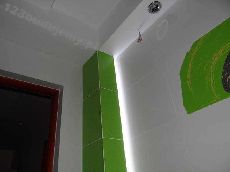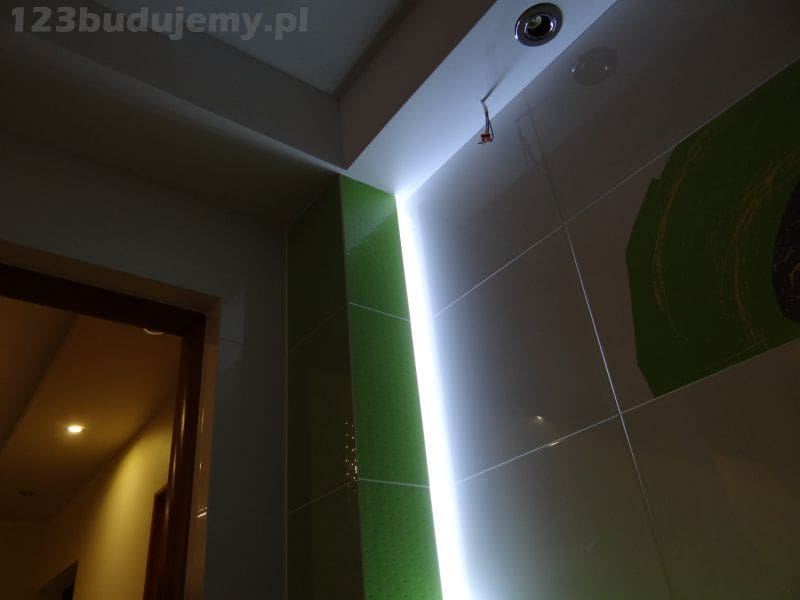W ramach walki z nudą w zimową sobotę postanowiłem potestować zakupioną na testy przy okazji zakupów żarówek najmocniejszą taśmę led smd 5050 300 diód na 5m. Tania nie była bo za odcinek metrowy zapłaciłem ponad 50 zł. Faktycznie moc światła jest znacząco lepsza od taśm które miałem okazje montować z innych moich konstrukcjach. Ale co za dużo to nie zdrowo …. światło okazuję się zbyt mocna na moje potrzeby stworzenia delikatnej poświaty w łazience. W naszej łazience na poddaszu mamy aż 4 miejsca przygotowane pod montaż taśmy led, światło podświetlenia ma być wyzwalane poprzez czujkę ruchu. Przy zastosowaniu tak mocnego światła efekt będzie dziwny. Przedstawiam poniżej zdjęcia gdzie testowałem taśmę. Aparat fotograficzny średnio jest w stanie przekazać Wam jak to naprawdę wyglądało, postarałem się wybrać najlepsze zdjęcia do prezentacji.