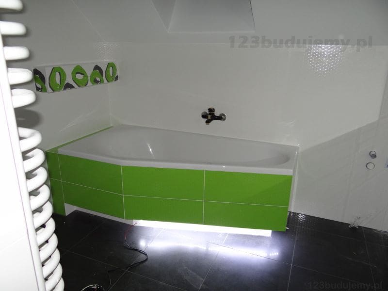W tym przypadku najbardziej przeszkadza mi moc światła, gdyż odbija się od podłogi, gdzie widać ciąg kropek – czyli pojedynczych diód, będę musiał zastosować profil na taśmę led, który skieruje światło nie ku dołowi, lecz w kierunku ścianki podstawy wanny by wyeliminować efekt odbijania się diód na taśmie od podłogi.
